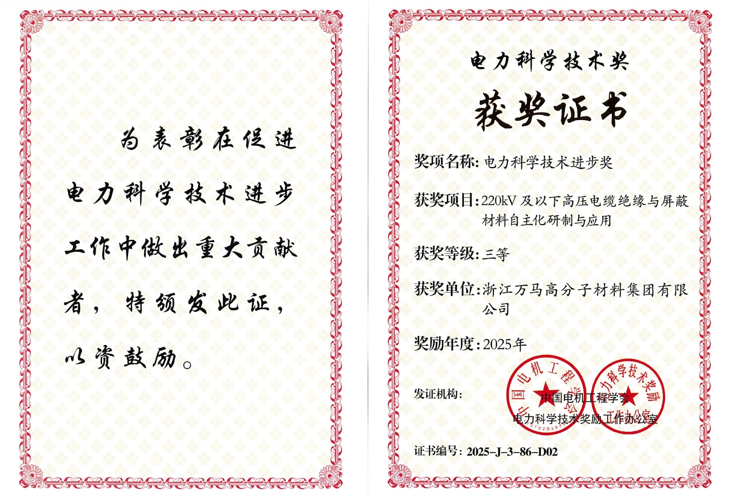 万马高分子以优秀的产品品质获得了多方机构的认可,顺应市场发展与行业趋势,积极探索和引领新的发展理念和创新工作方式,全力推进企业的全产业链质量品控能力和服务能力等新型能力建设。